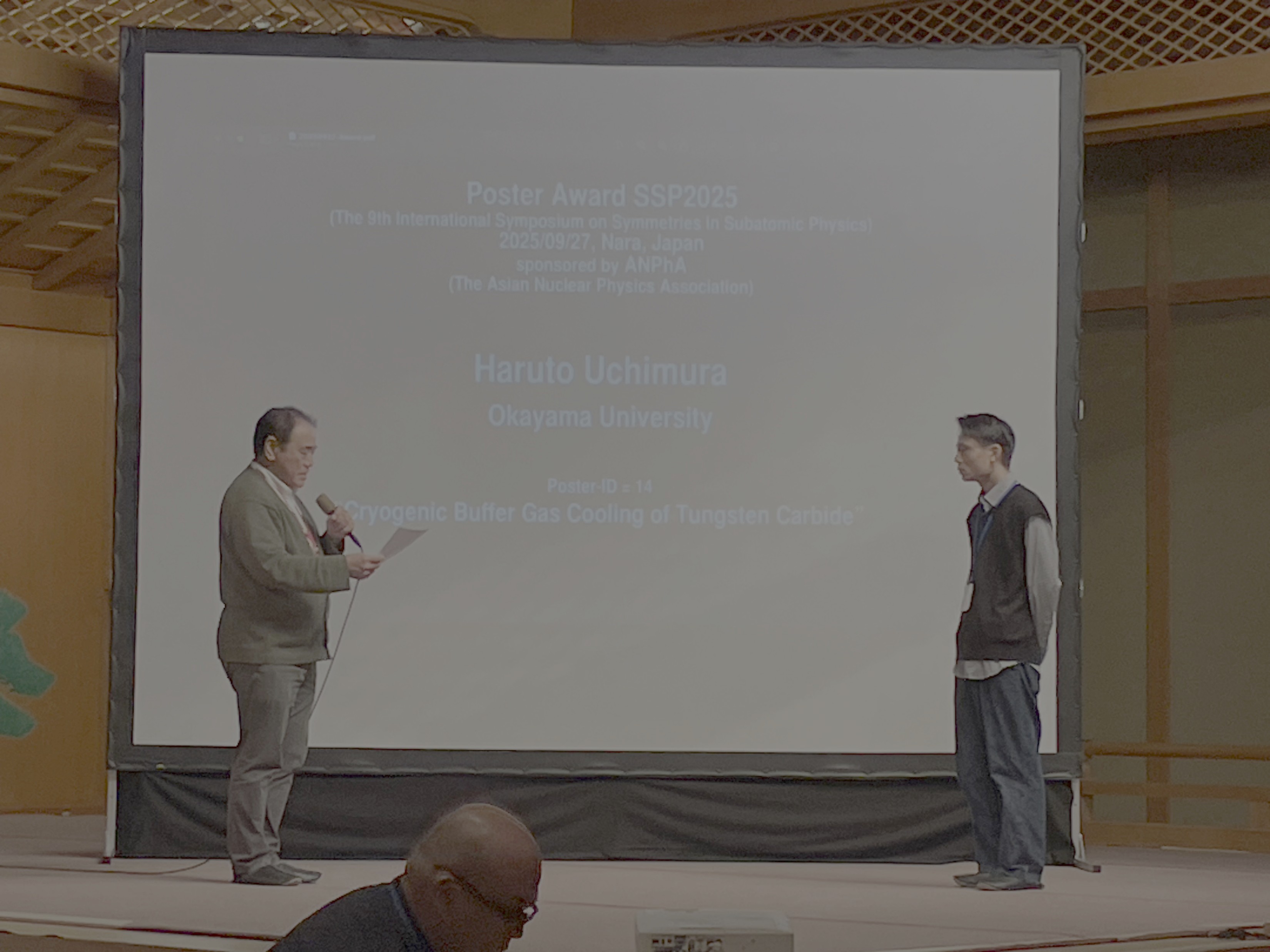 The 9th International Symposium on Symmetries in Subatomic Physics (SSP2025)で、最優秀ポスター発表に与えられるANPhA awardを、内村陽利さん(大学院博士前期課程1年:量子宇宙基礎物理学)が受賞しました。